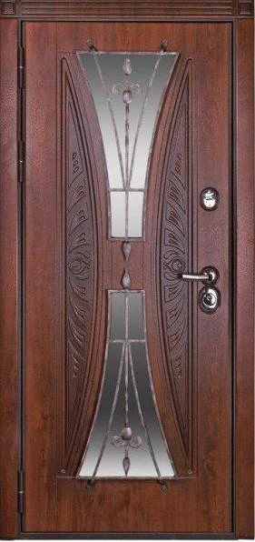 Прочная металлическая Дверь с витражами DZ629 по цене от 65 000 руб. под заказ в любой комплектации. Вы можете выбрать материал, замки, цилиндры и многое другое. Производим сами! Быстрая доставка и установка в Омске.